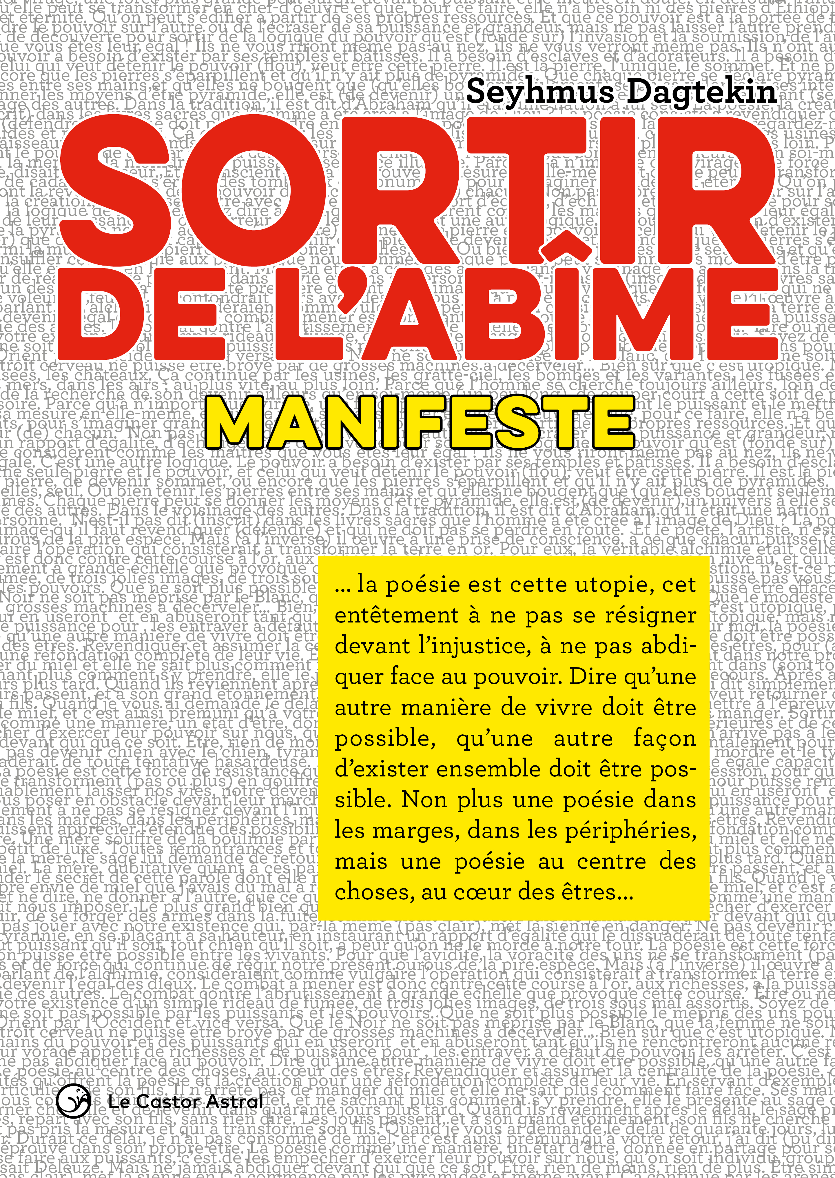 Deux grands textes sont dans ce livre : « Invitation à sortir de l’abîme » et un long entretien donné par l’auteur, qui revient sur son travail poétique et sa vision du monde.