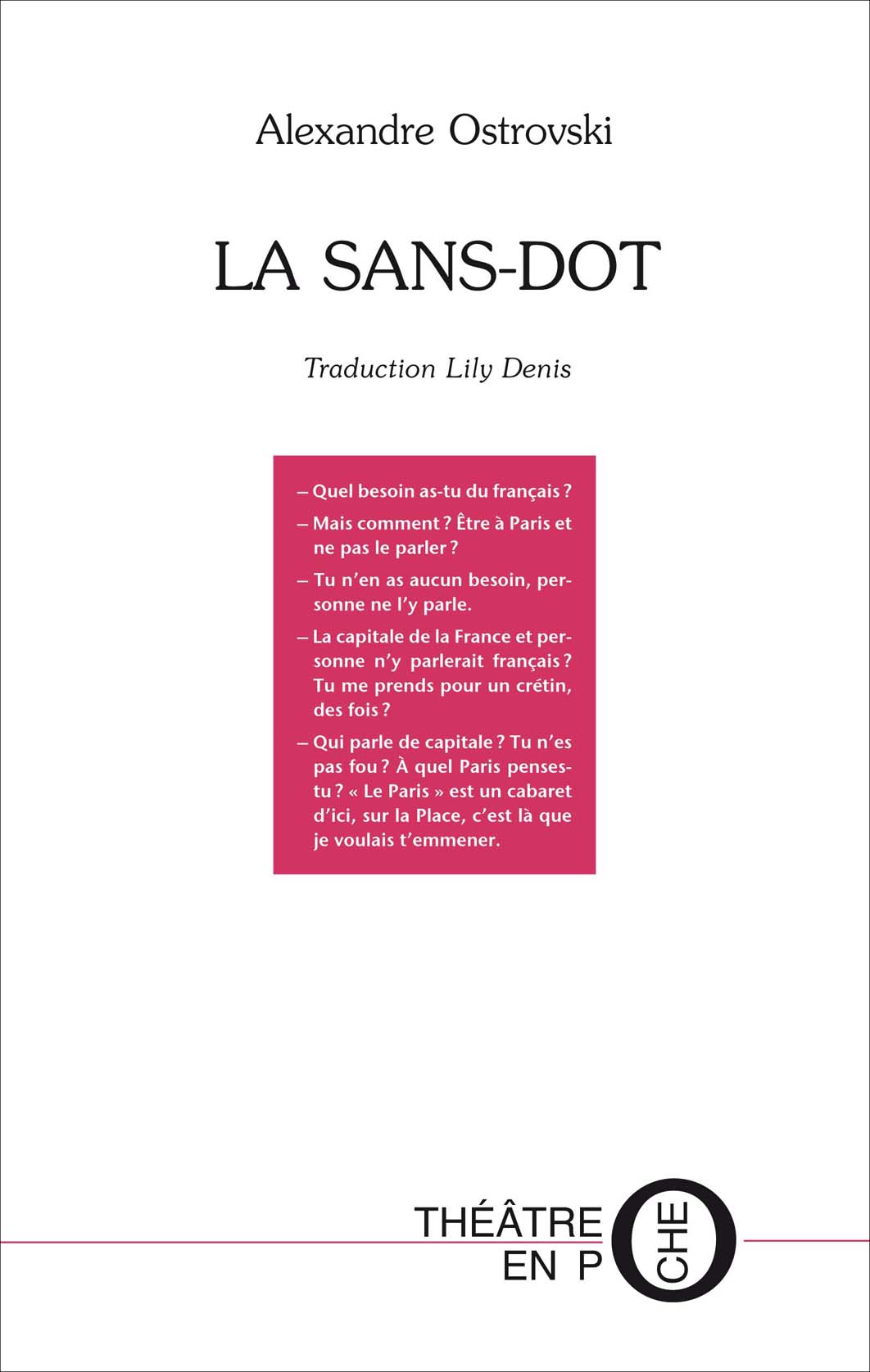 « La Sans-Dot » est une grande pièce méconnue. Une œuvre qui dépeint une certaine société russe de la fin du XIXème siècle.