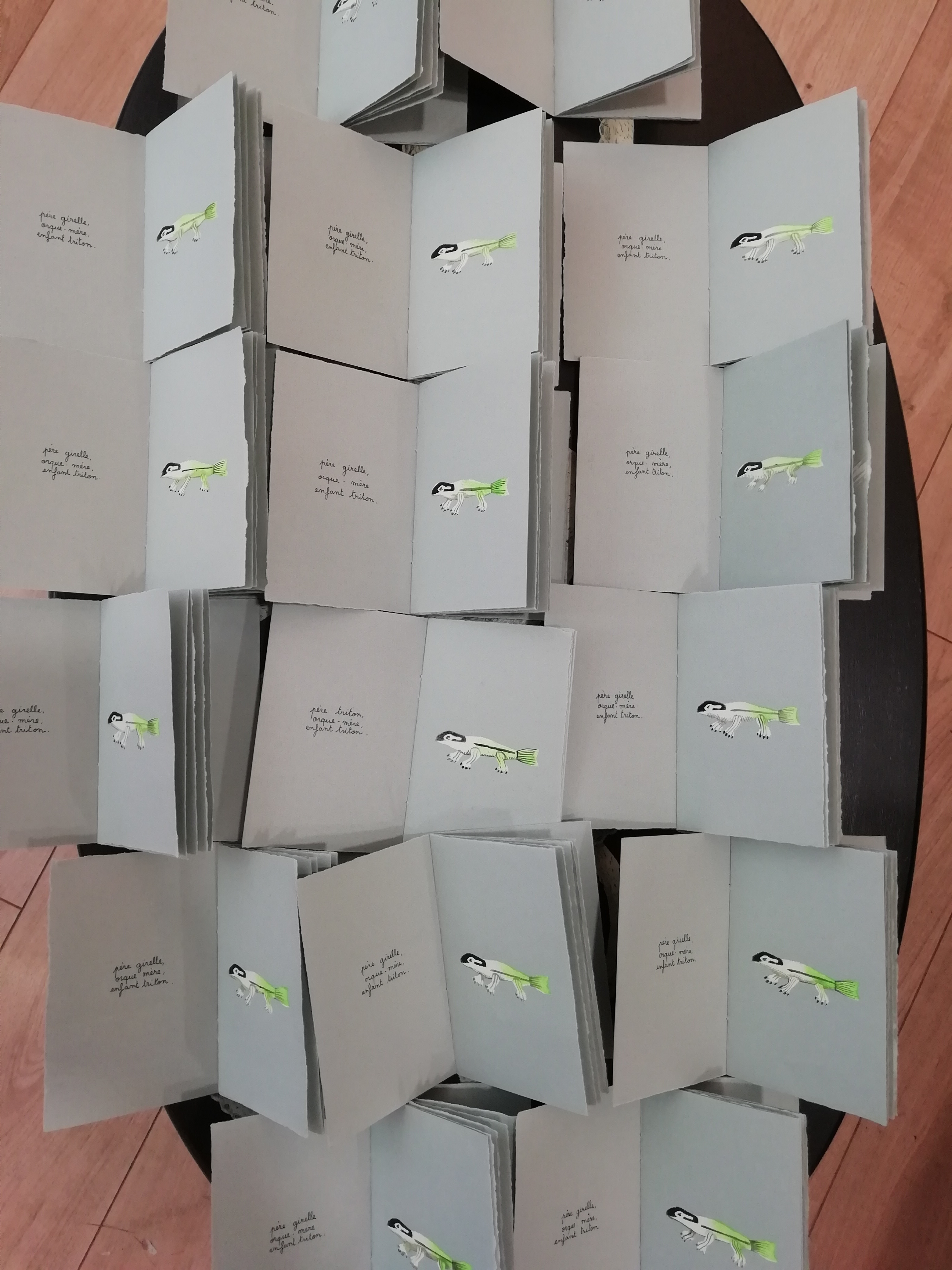 Illustratrice et auteur, cécile Gambini s'imagine une bibliothèque idéale créée entièrement à la main. Les dessins sont des originaux peinture, les typos de la machine à écrire rouillée, les coutures et reliures sont maison. Un travail de fourmi.