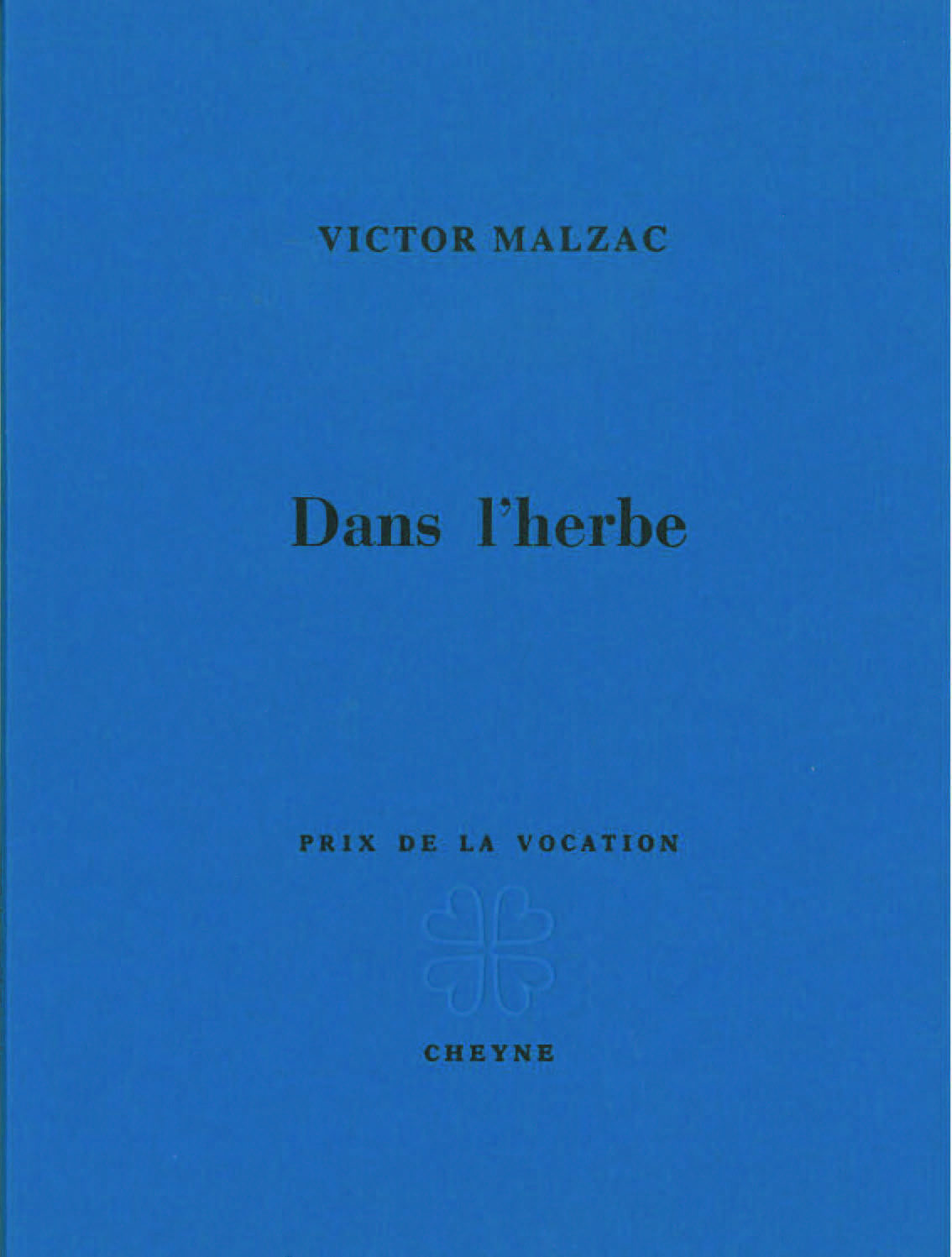 "Dans l’herbe", premier livre publié à Cheyne par le poète Victor Malzac, témoigne d’une adolescence dans une langue qui ne peut qu’être celle de ce « temps légendaire qui ne dure que peu d’années mais devient un univers entier et dessine un temps mythique » (Milo De Angelis).