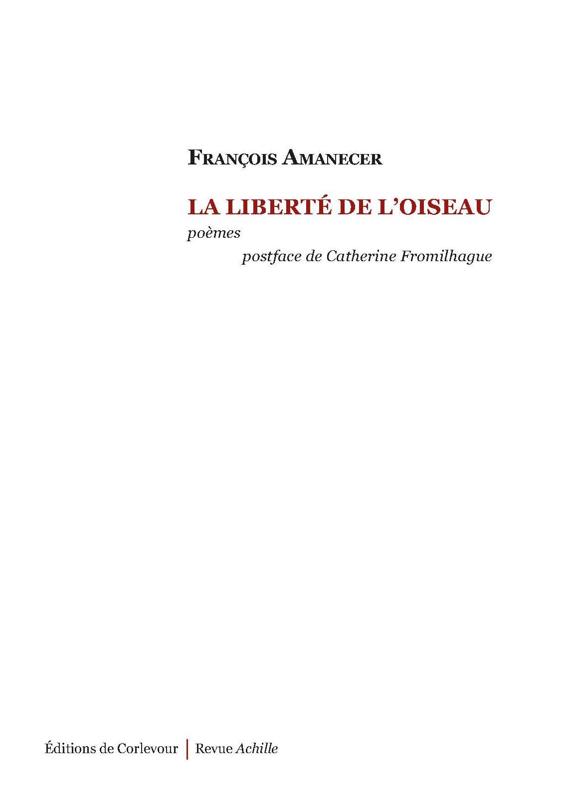 François Amanecer : Poète, essayiste. Il a publié dans les revues Po&sie, Grèges, NUNC, Nouveau Recueil, etc. – ainsi que des essais esthétiques dans les mêmes revues et dans Études, Positif, Kephas, Diogène, Communio. Ses ouvrages les plus récents sont Le Corbeau interrompu, Cri ténu du grèbe, Le tri poétique (essai), et Confrontations (essai), tous publiés aux Éditions de Corlevour.