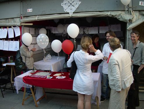Chaque poète recevra ses convives dans une des baraques du Marché durant toute cette soirée. Chaque poète interviendra sur le Podium du Marché durant 2 minutes.