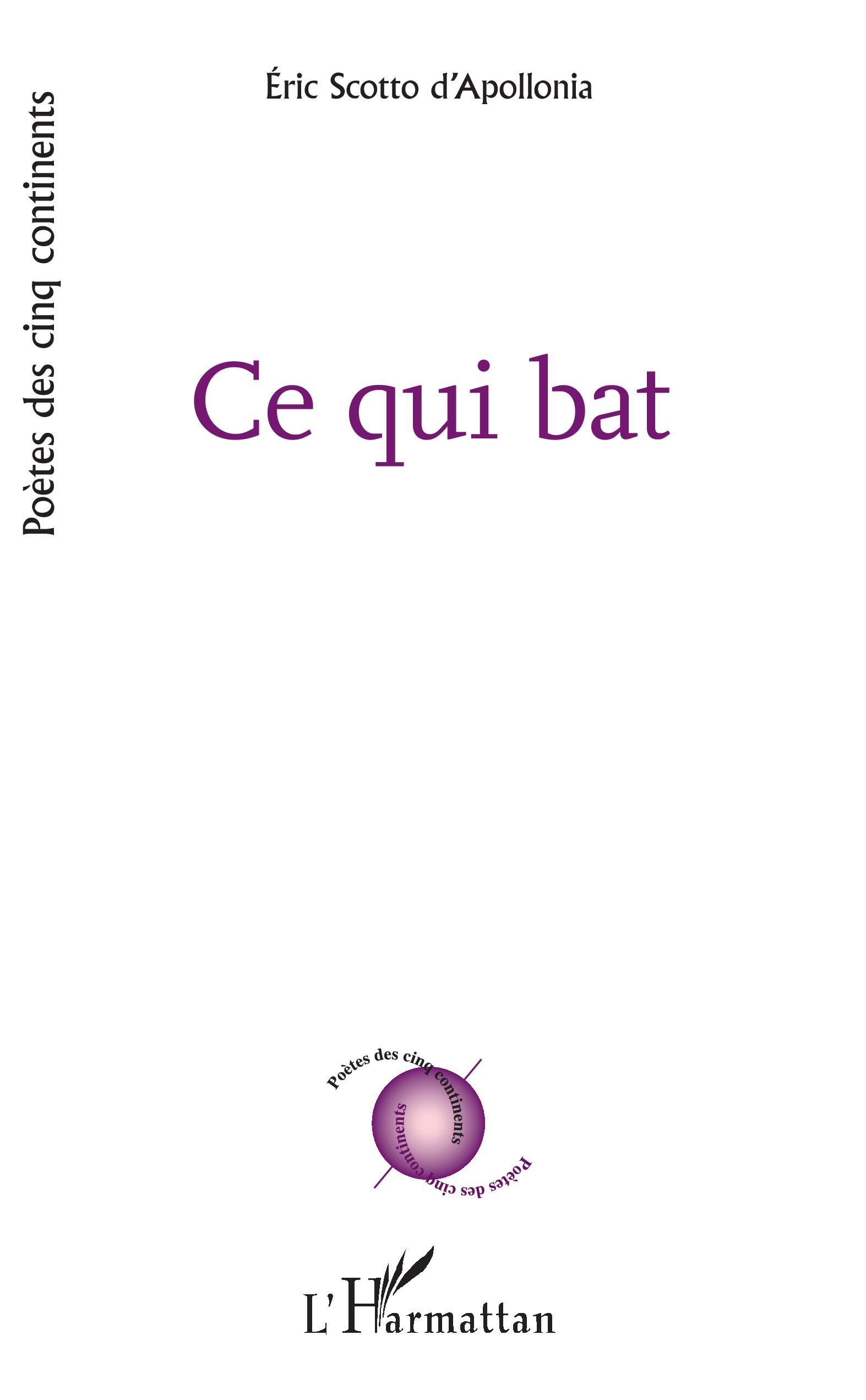 Éric Scotto d'Apollonia est professeur de français en région parisienne. "Ce qui bat" est son deuxième recueil poétique paru chez L'Harmattan.