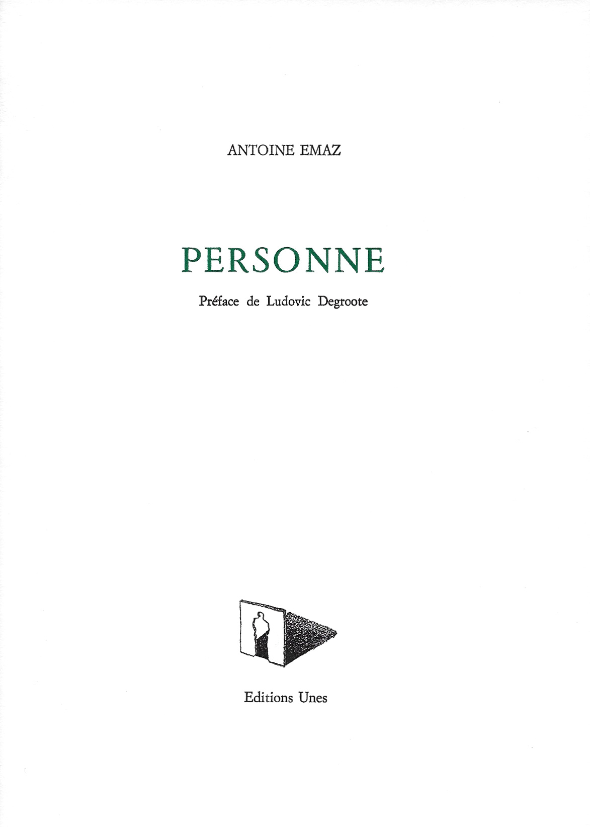 « Antoine Emaz nous a quittés en 2019. La parution, début juin chez Unes, de Personne offre une occasion d’entendre encore un peu sa voix. Le recueil, composé de cinq poèmes jusqu’ici seulement édités en micro-tirages – l’un datant de 1996, les autres des années 2017 et 2018 –, fait doublement écho à son titre : personne, c’est à la fois quelqu’un et aucun. Ici, la dépersonnalisation est la condition d’accès aux choses, à sa beauté et à sa fatalité. »